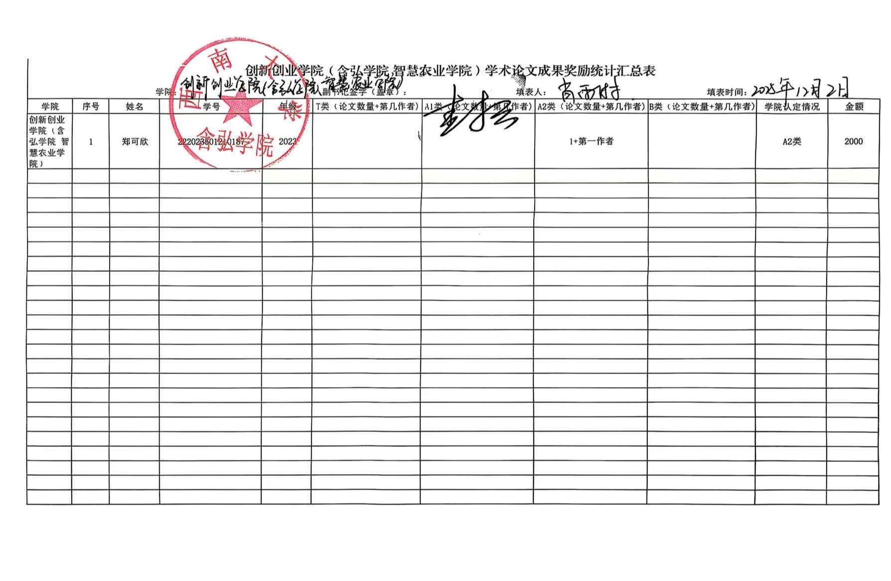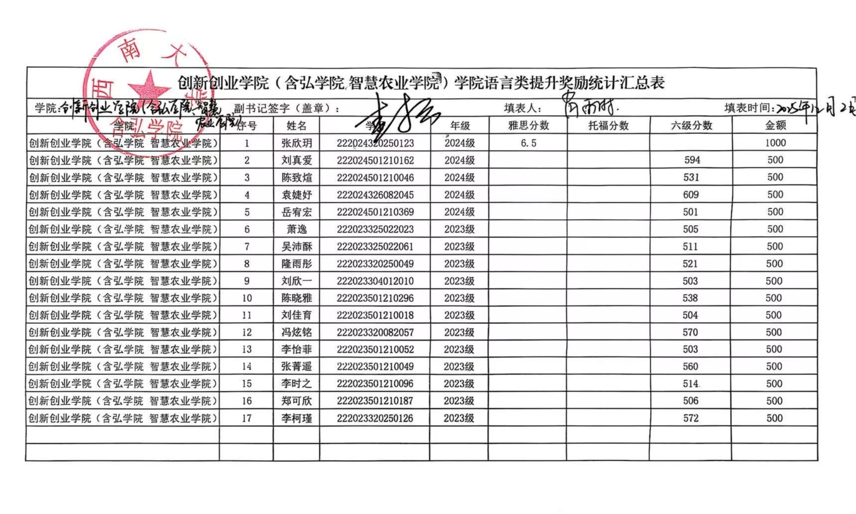 关于创新创业学院(含弘学院 智慧农业学院)语言类提升奖励及学术论文成果奖励公示